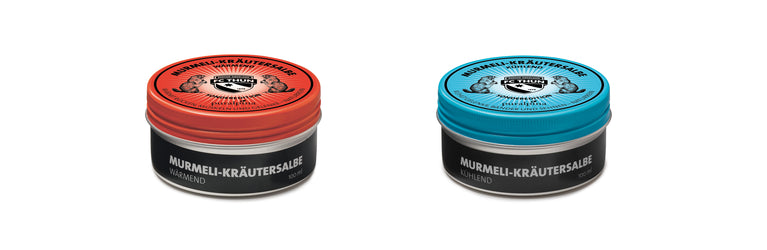 Getreu dem Motto «verändere niemals ein siegreiches Team» steckt in der Sonderedition unsere bewährte Murmeli-Kräutersalbe, unverändert in der Rezeptur, aber im FC Thun Berner Oberland Trikot. Die Sonderedition ist analog dem Original in den gewohnten Ausführungen als wärmende und als kühlende Ausführung erhältlich, wiedererkennbar an der roten oder blauen Dose.