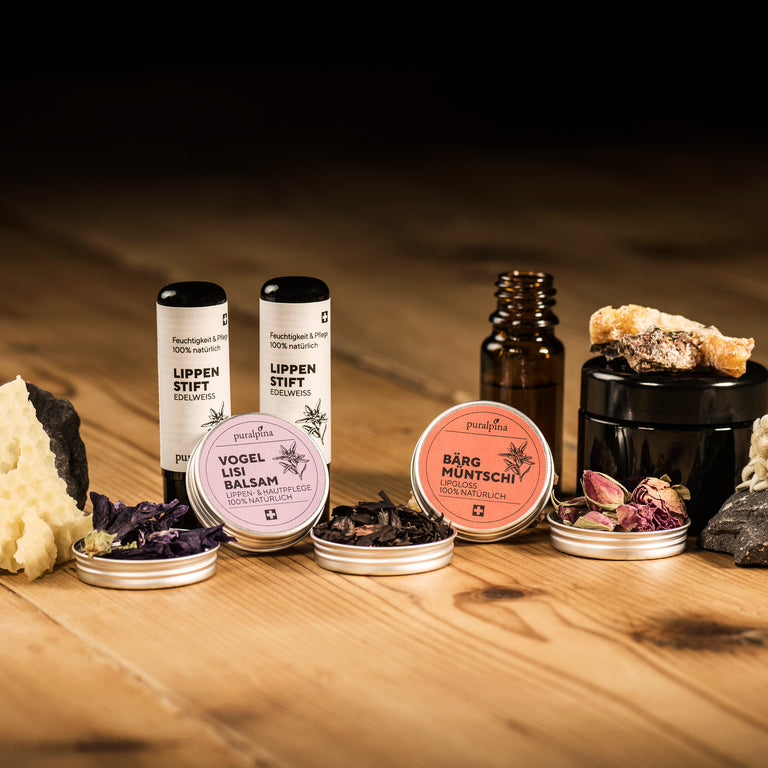 Hand care, foot care, lip care, skin care, deodorant – body care needs are just as diverse and varied as the products available for them. With our sets of Alpine natural cosmetics, you can discover our handmade Swiss natural products at special prices.