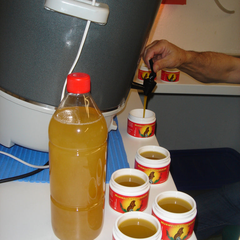 Matières premières éprouvées, presque oubliées, recettes de Grosi, alternatives naturelles. Cela nous fascine. Depuis 1992, nous produisons nos onguents aux herbes pour marmottes à la main à Frutigen.